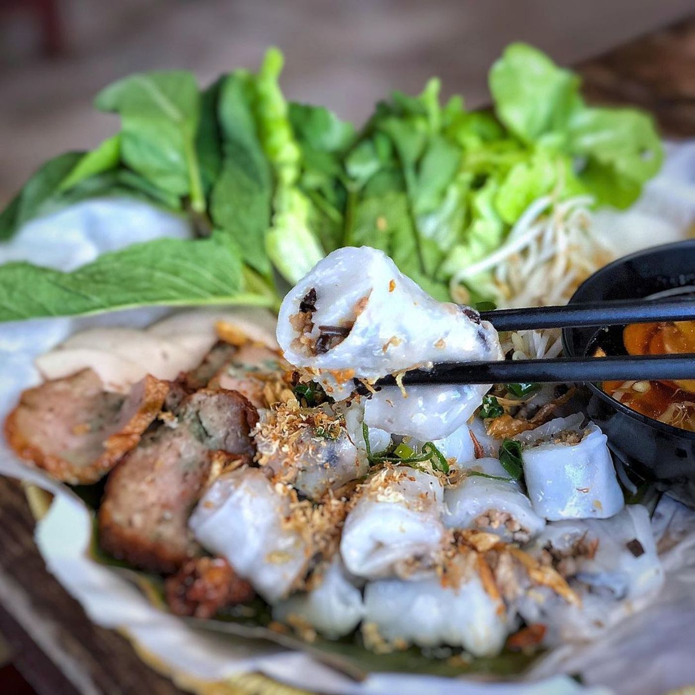 tradycyjne bánh cuốn (wietnamskie naleśniki ryżowe)